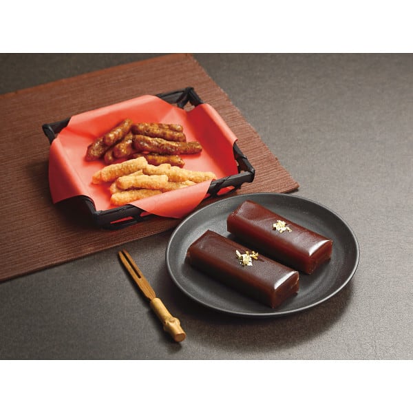 香ばしいかりんとう(黒蜜・白蜜)と、なめらかな口あたりの羊羹(小倉・本練)を一度にお楽しみいただけます。