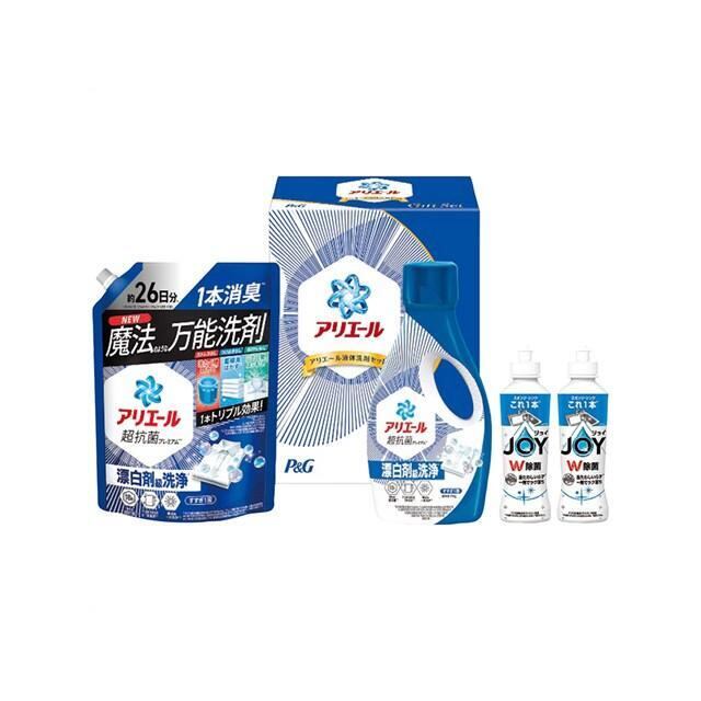衣料用液体洗剤アリエール本体700g×1、衣料用液体洗剤アリエールつめかえ特大625g×1、食器用洗剤除菌ジョイ本体170ml×2